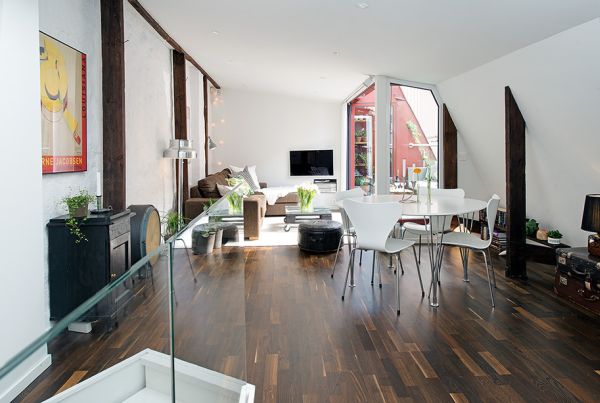 Nội thất trong các phòng đều được thiết kế với kiểu dáng đơn giản. Điểm nhấn được tạo ra chủ yếu từ sự tương phản giữa những bức tường trắng và sàn gỗ màu tối.