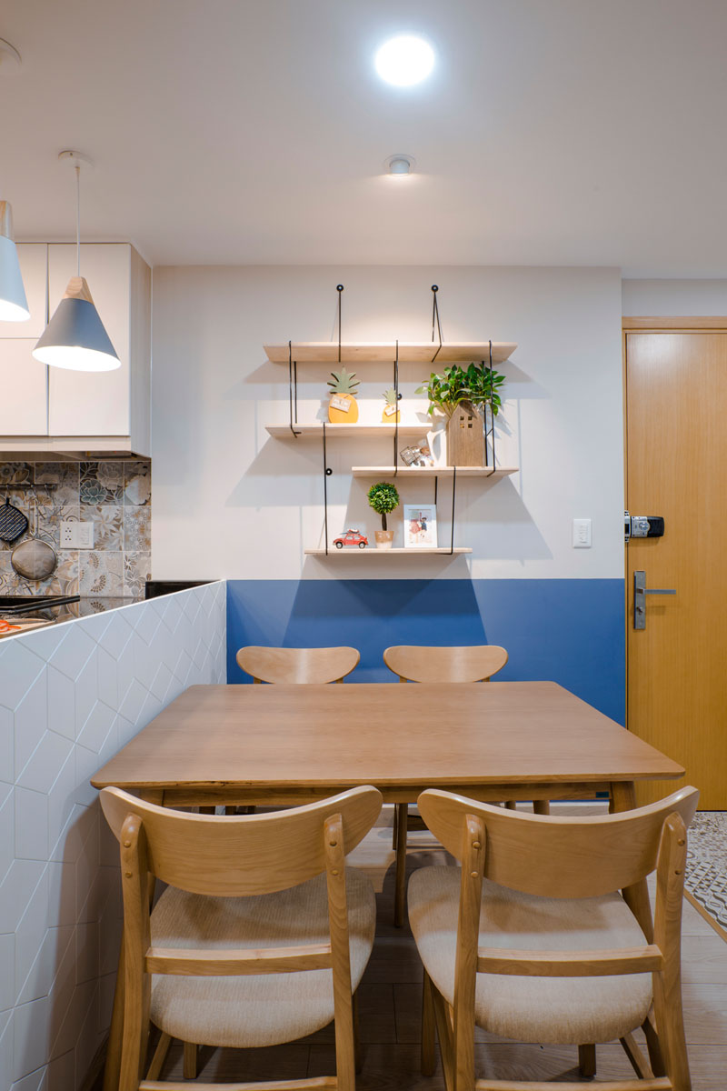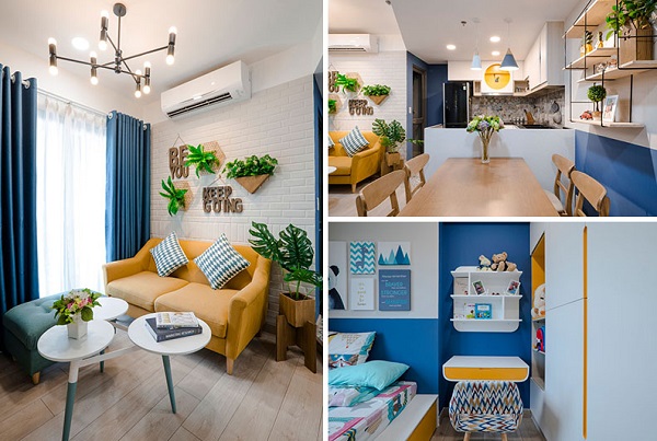 Căn hộ với thiết kế không gian hiện đại bên cạnh sự phối hợp hoàn hảo của 2 tông màu xanh dương và vàng.