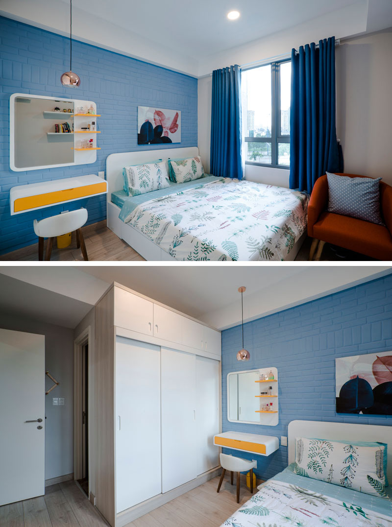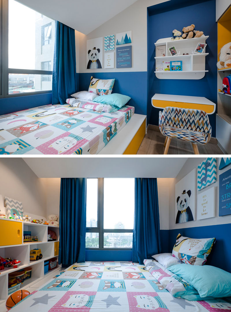 Trong khi đó, phòng ngủ của con trai thì lại sống động, ngộ nghĩnh hơn và sử dụng nhiều đồ nội thật đơn giản tạo nên không gian vui nhộn.