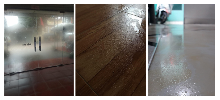 Hơi nước trong không khí rất cao nên nước thường bị ngưng tụ và đọng lại trên bề mặt mọi vật xung quanh chúng ta. Độ ẩm trong nhà cao có thể là nguyên nhân chính gây khó chịu và hư hỏng nhiều món đồ điện tử. Việc hơi nước ngưng tụ thường có ở những ô cửa kính. Nấm mốc thường mọc ở những góc khuất trong ngôi nhà và tạo nên những mùi khó chịu.