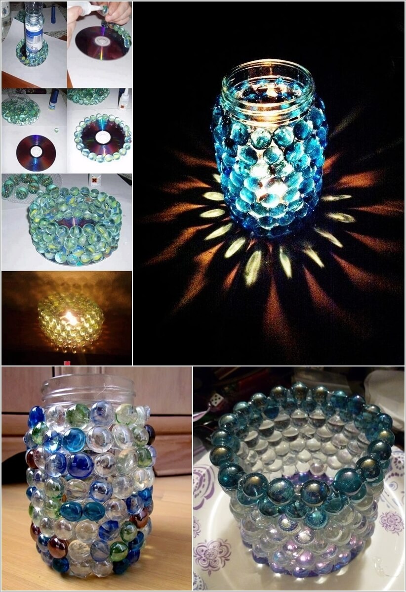 Bạn cũng có thể thay thế đế nến bằng xi măng và trang trí những hình mà mình thích.