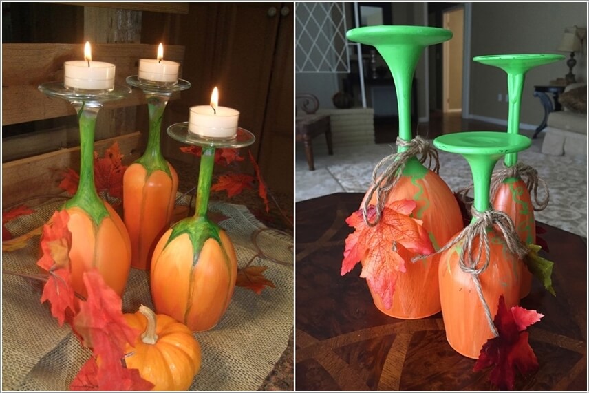 Thay vì cắm nến trên những chiếc giá thông thường, bạn hãy sử dụng những chiếc ly uống rượu, lật ngược chúng lên biến đáy cốc thành nơi cắm nến.
