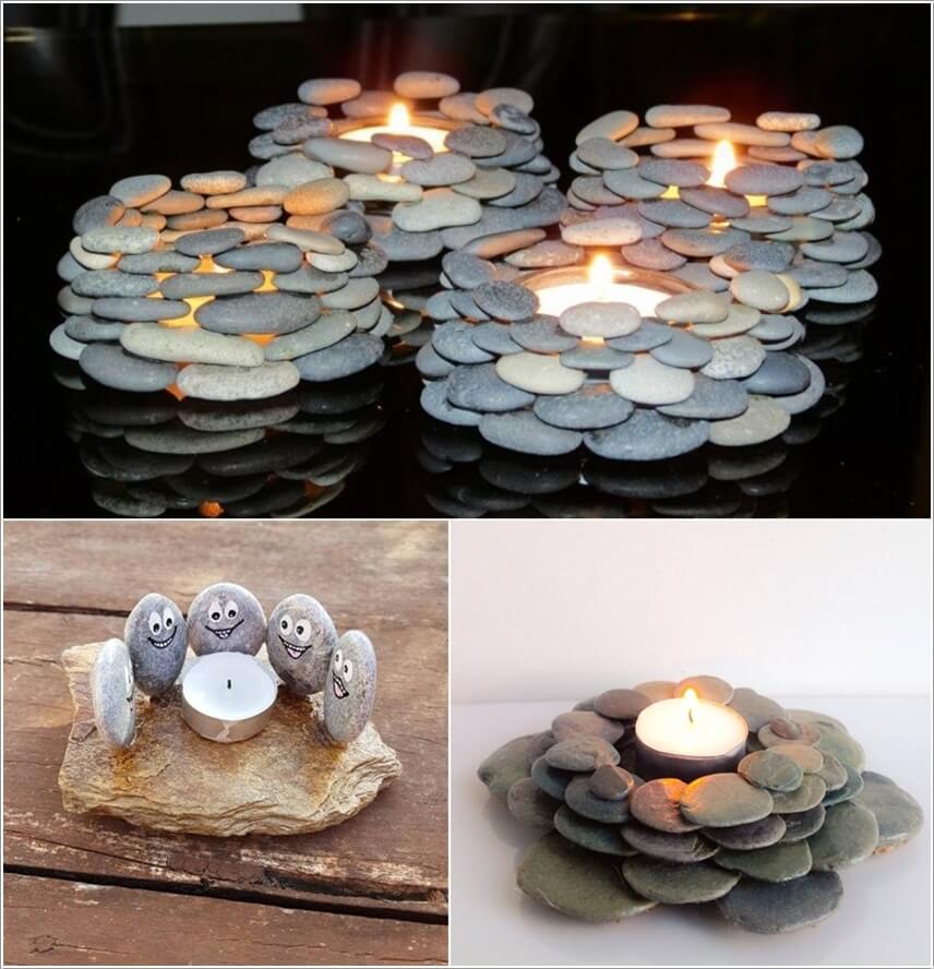 Còn đây là những hòn sỏi được chủ nhân khéo léo sắp xếp, tạo hình siêu dễ thương trong ánh nến ấm áp.